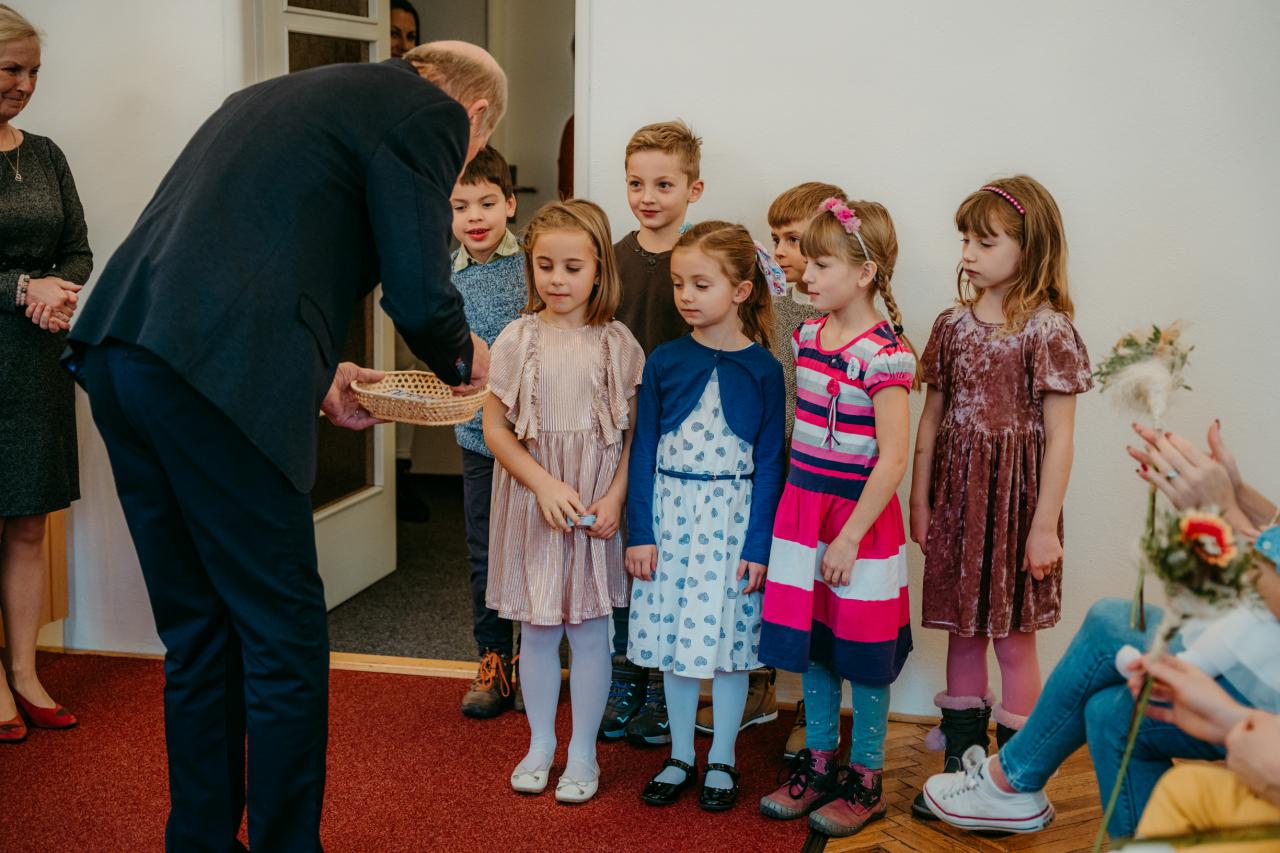 Fotografie z vítání občánků na úřadu městyse dne 12. 11. 2023
