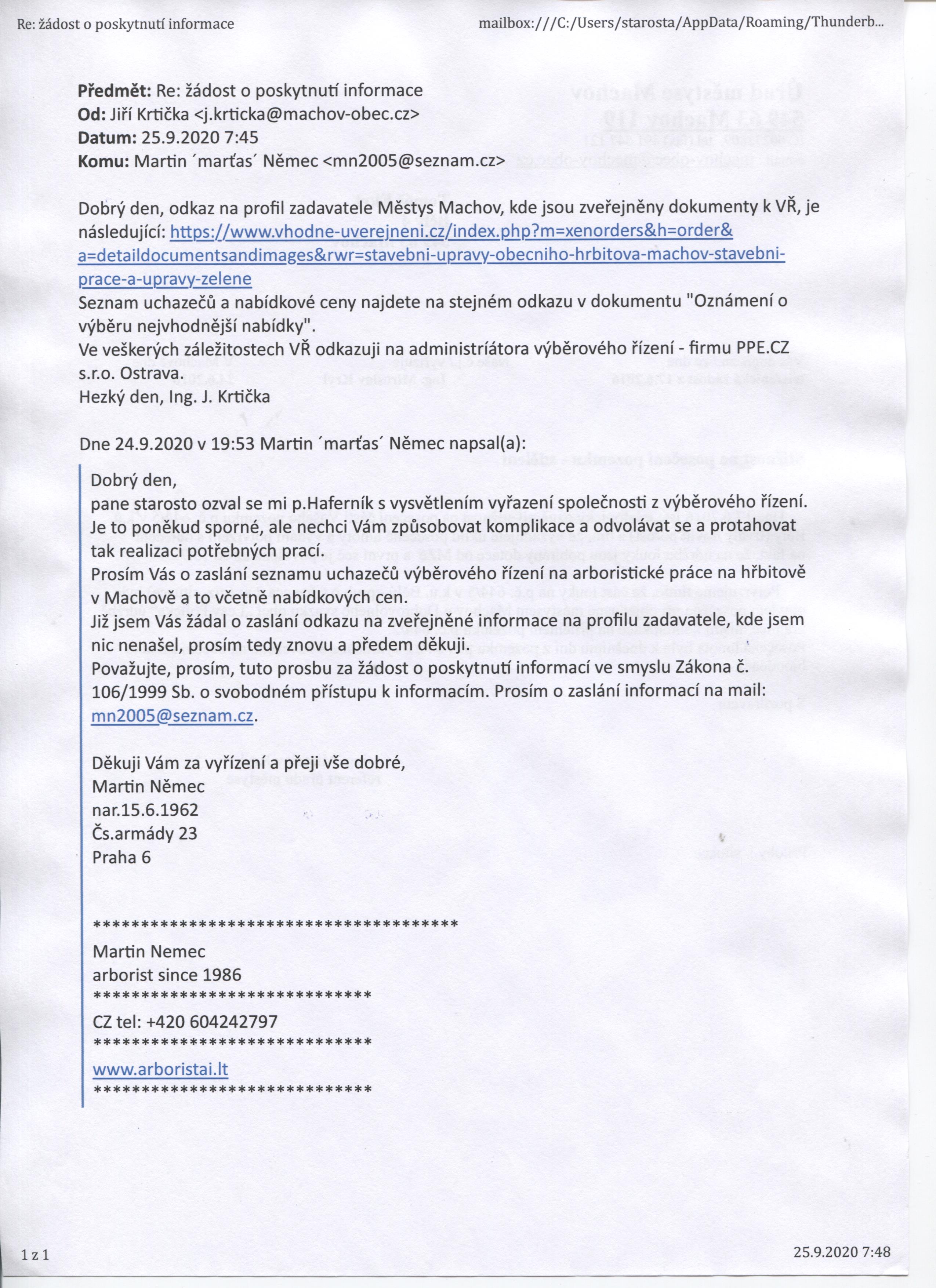 - odpověď na žádost ze dne 24.9.2020 zde